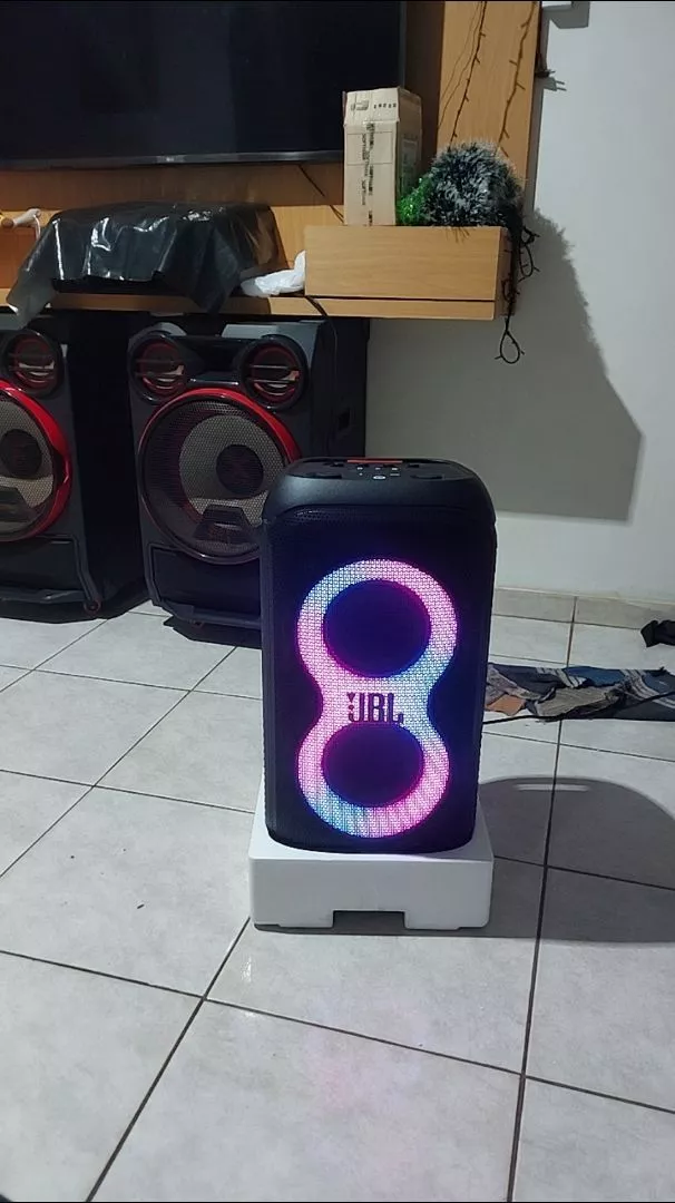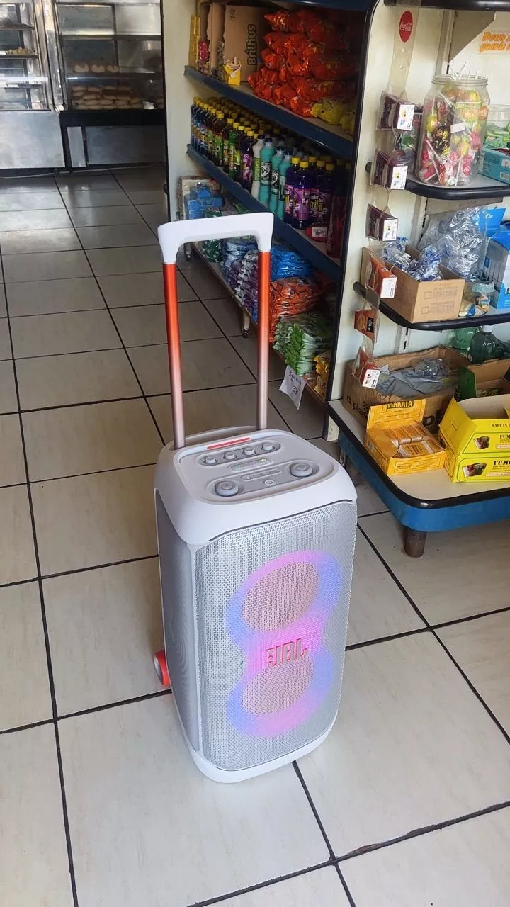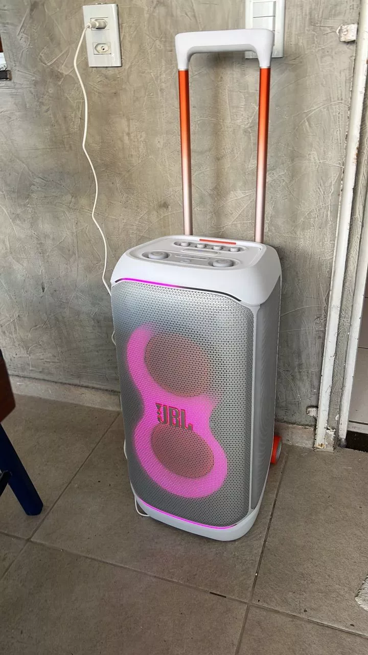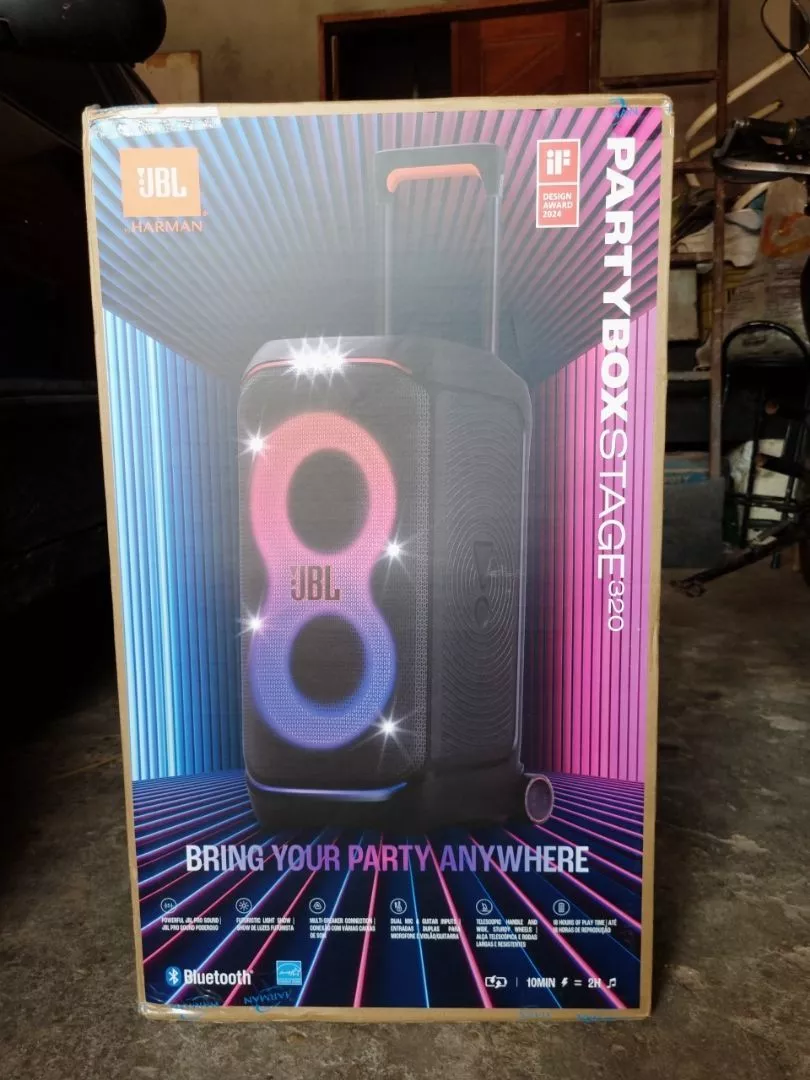 Torre de som com graves impressionantes e luzes interativas que transformam qualquer lugar em uma pista de dança Com a JBL PartyBox Stage 320, você pode começar a festa a qualquer hora, em qualquer lugar. Transforme qualquer espaço, dentro ou ao ar livre, em uma pista de dança. O poderoso JBL Pro Sound tem graves impressionantes que preenchem um palco sonoro amplo e agitam a multidão, enquanto seus olhos ficam encantados com um show de luzes adaptável com luzes estreladas cintilantes, trilhas de luzes frias e efeitos estroboscópicos incríveis sincronizados com seu ritmo. Use as entradas de microfone e violão/guitarra para mostrar sua presença de palco. Você pode controlar o fluxo da festa durante toda a noite com efeitos interativos divertidos. A alça telescópica sólida e as rodas largas e resistentes permitem que você transporte a JBL PartyBox Stage 320 para praticamente qualquer lugar e, quando estiver lá, a estrutura à prova de respingos significa que um pouco de chuva não arruinará a diversão. O melhor de tudo é que ela oferece até 18 horas de reprodução e, se os bons momentos ainda estiverem acontecendo, basta trocar a bateria substituível e continuar. Para uma festa ainda maior, é fácil conectar ou usar o aplicativo JBL PartyBox para conectar várias caixas de som habilitadas para JBL Auracast sem fio. Reúna as pessoas e exalte a experiência com a JBL PartyBox Stage 320.